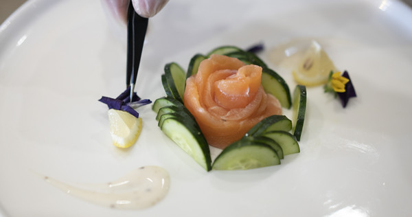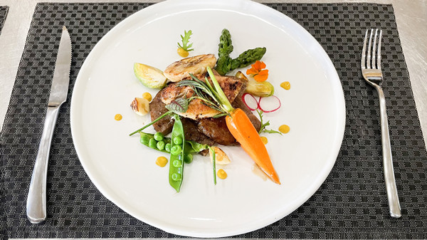 随后,王大师为同学们分别带来了三文鱼沙拉、法式牛排配鹅肝两道菜肴的做法。大师精湛的厨艺让在座学生赞叹不已,他生动形象的课堂讲解技巧得到了同学们的一致好评。大师一边讲解一边演示,让学生们近距离观摩每个步骤的制作过程。