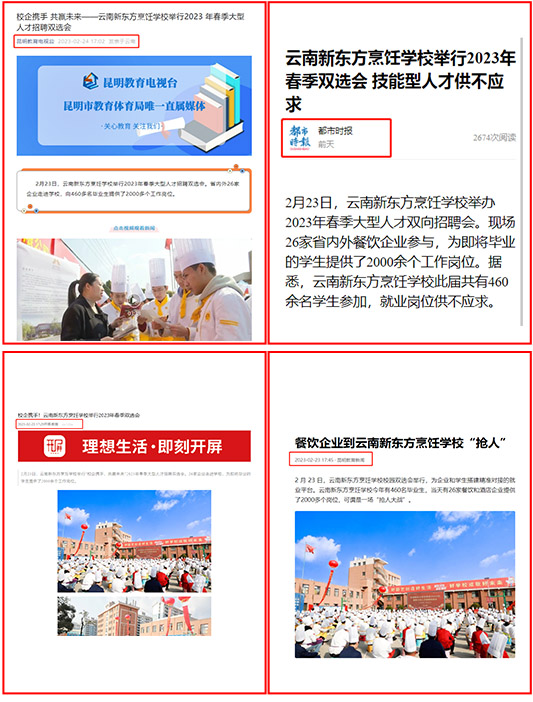近日,云南新东方烹饪学校举办的“校企携手 共赢未来”2023年春季大型人才招聘双选会吸引了多家媒体争相报道。