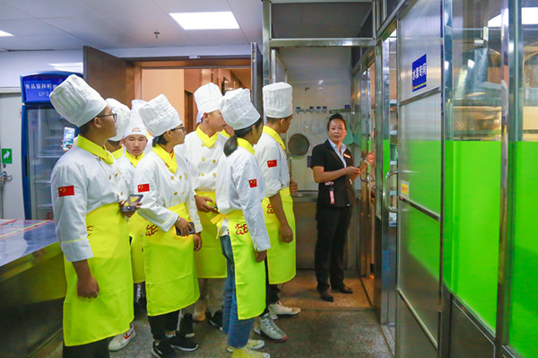 近日,云南新东方烹饪学校学生代表在学校创就业指导中心负责人张主任带领下走进广东海鲜坊酒楼参观学习。