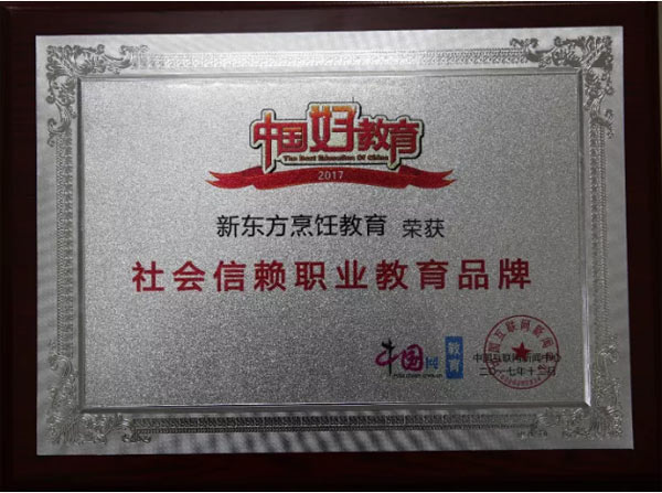 新东方烹饪,荣膺网友心中“社会信赖职业教育品牌”