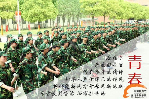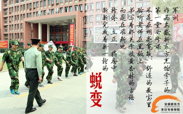 军训作为安徽新东方烹饪学子的第一堂必修课,不是在明亮宽敞、舒适的教室里聆听老师在黑板上书写着那关于岐黄杏林的古语,而是在不断地转体、立正、稍息中渐渐完成着新一轮的蜕变。