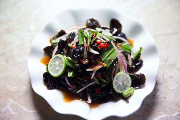 (6)家常菜类:小米辣蒸鱼头、西芹鲜鱿、香辣猪脚、傣味木耳