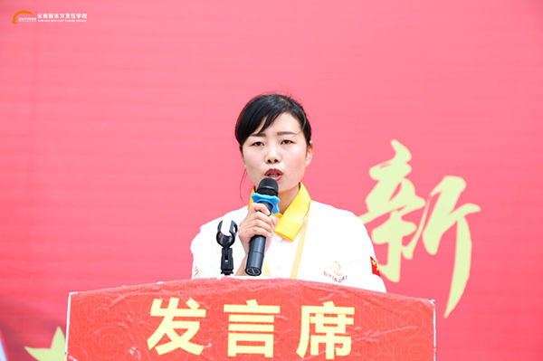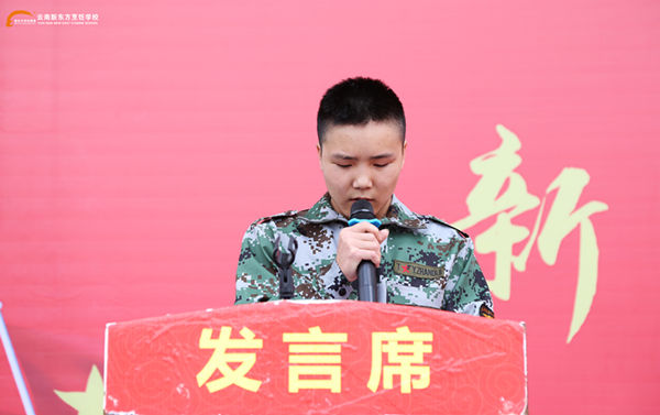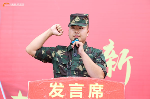 最后,教师代表曹老师说到:“希望同学们在这热火朝天的军训生活中锻炼意志、锻炼体魄,希望你们在充满生机的云南新东方学到技能,增长才干。”