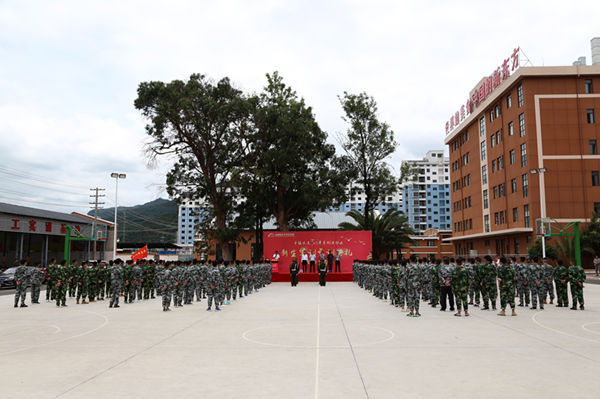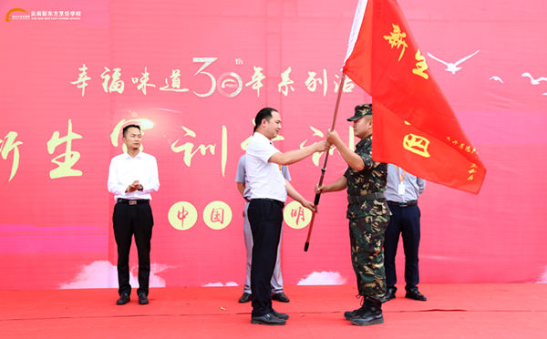云南新东方烹饪学校2018年秋季新生军训开训典礼于7月3日14:30在云南新东方篮球场举行,出席此次开训典礼的有校区邓主任、学管王主任、军训总指挥王教官以及秋季新生班的同学们。