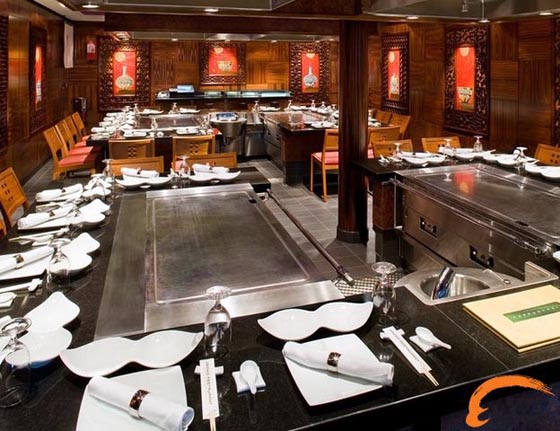 日式铁板烧是日本料理中最高级别的就餐形式,是财富和地位的象征。日式铁板烧是将食材直接放在热铁板上炙烤成熟,这些食材事先不能腌制加工,而是通过高热的铁板快速烹调成熟以保留其本身的营养和味道。