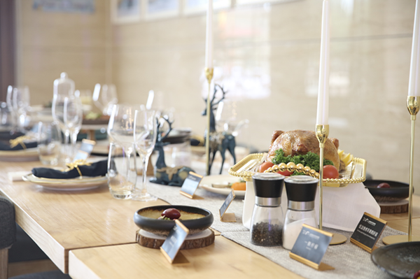 在新东方学子们盛情邀请下,黄渤老师走进教室参与到了课程中,与同学们一起学习西餐。教师台的案板上摆放着低温慢煮苹果鹅肝酱、一颗柠檬和惠灵顿牛排,最后一道烟熏三文鱼卷正进入尾声。这四道菜用料之讲究,教学之专业无不体现着新东方对于办烹饪教育的的独到匠心。烟熏枪交递到黄渤老师手中,烟雾徐徐喷出,由浅到深填满烟罩包裹住三文鱼卷。稍许烟熏后,黄渤老师亲手打开烟罩,烟雾弥漫开来,整道菜充满了仙气,恍如天上美味,让人垂涎三尺。