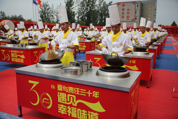 助力新东方烹饪30周年庆,百人击鼓翻锅强势出击