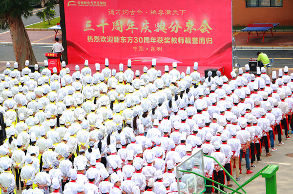 2018年7月27日,代表云南新东方烹饪学校出席“新东方烹饪教育三十周年品质庆典”的周凡老师、王忠於老师、蔡昱老师、赵世碟同学,带着荣誉与奖项,伴着鲜花与掌声,凯旋而归,我校师生亦早早列队迎接,共同见证这一荣耀时刻!
