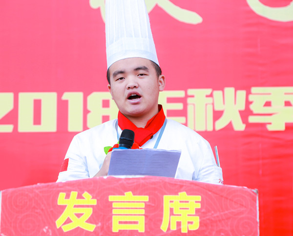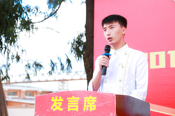 欢送会快结束的时候,现场来了一位神秘嘉宾。他就是来自云南新东方烹饪学校的往届毕业生。通过自己的不断努力,现担任云海肴餐饮培训主管一职。他用自身的经验告诉学弟学妹们:“只要努力,朝着自己的目标前进,总有一天会成功,在此也祝愿毕业的同学们前程似锦。”