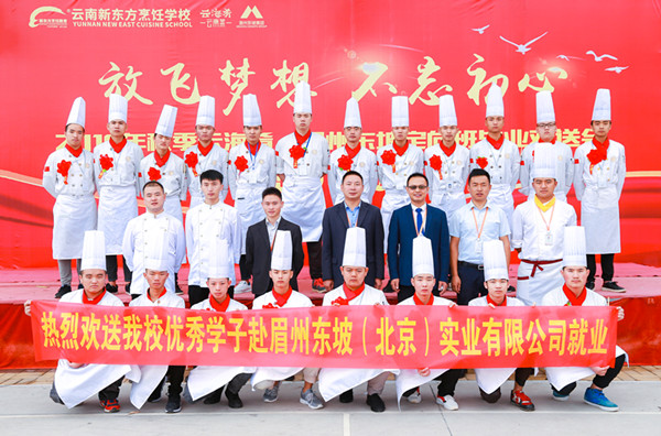 9月20日8:30,云南新东方烹饪学校眉州东坡、云海肴定向班的同学们迎来了属于他们的毕业欢送会。出席此次欢送会的有云南新东方校区邓主任、教务处刘主任、创就业指导中心张主任、优秀教师代表以及眉州东坡、云海肴企业代表。