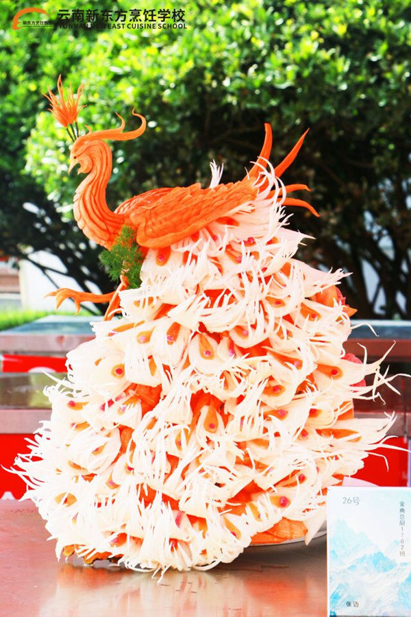 食品雕刻是艺术的结晶体现,也是中国五千年的烹饪文化长河中留下来的一朵夺目的奇葩。今天呈现给大家的作品是来自云南新东方烹饪学校2017届金典总厨1702班同学的雕刻阶段作品展。