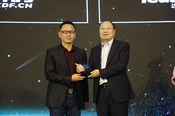 新华教育集团副总裁汪俊(右)代表集团领取荣誉