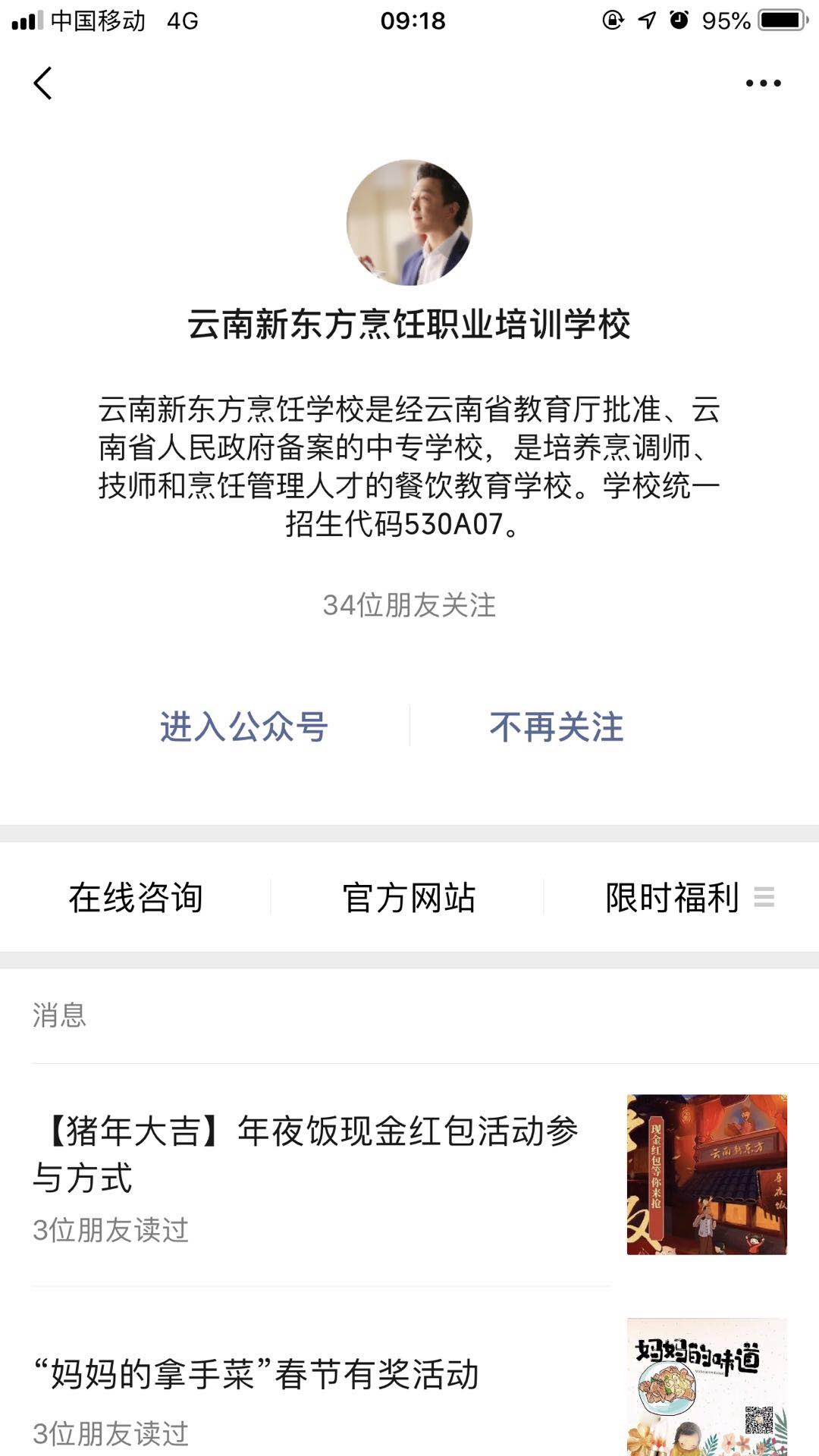 云南新东方烹饪学校官方微信服务号(yunnanxdfpr)