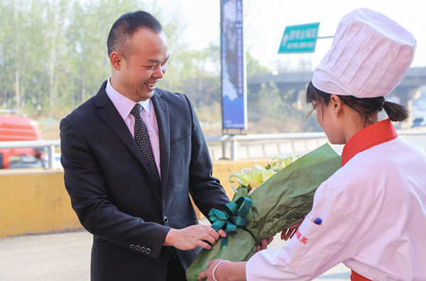 上午10时阳光正好,云南新东方烹饪学校的同学们早已迫不及待的排好欢迎队伍,等着迎接他们滕师哥的到来。