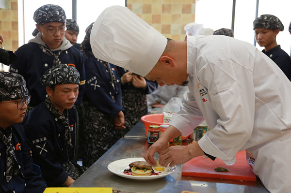 西餐是十分精致的一个餐饮种类,从选材到调料再到烹饪摆盘都十分讲究,汤劲松大师从最开始的选材一点点讲解,面对给同学们演示做法,说明需要注意的问题,同学们都专注听讲,时而抬头观看,时而低头记录,整堂课程就在轻松愉快的环境中结束了。