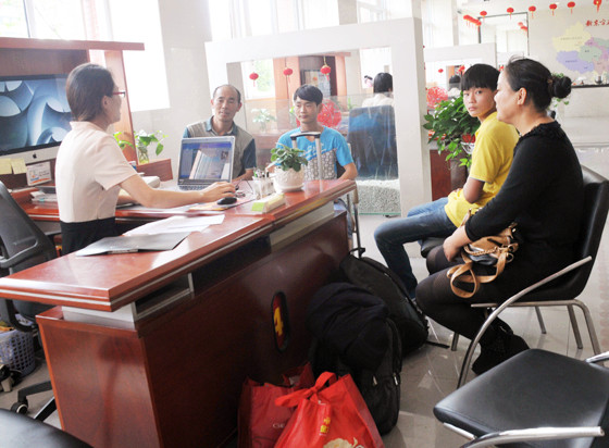 脸上洋溢着幸福与期望,这是前来陪同报名的学生家长共有的一幕;