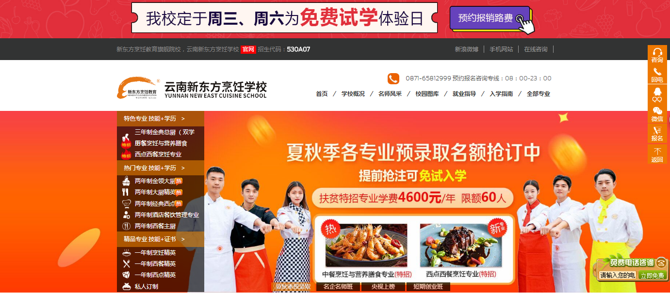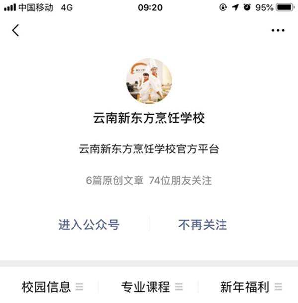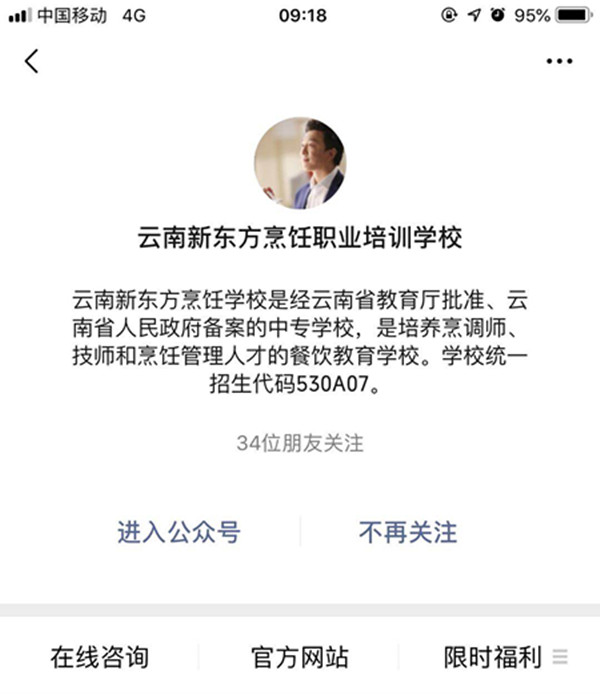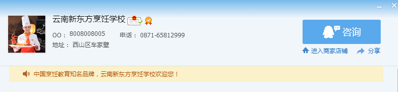 近期有许多小型培训机构打着云南新东方烹饪学校的名义在招生。为了避免有意向要到云南新东方烹饪学校学习烹饪的家长及同学在咨询了解学校情况的过程中受到不法分子的诈骗,请您们在咨询了解的时候认准云南新东方烹饪学校官方指定的官方网站、官方微信订阅号、官方微信服务号、官方微博、官方QQ、官方QQ空间以免上当受骗!