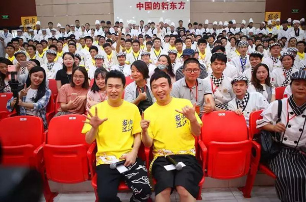 除了歌星与影星之外,著名的小品演员小沈阳和大潘也曾来到新东方烹饪学校路演,两位笑星的到来让同学们十分欣喜,小品演员的魅力可见一斑。