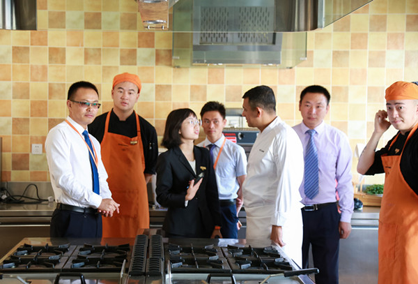 继5月29日,我校组织优秀班主任教师进入昆明索菲特大酒店与默罕默德行政总厨交流分享后,(昆明索菲特大酒店参观交流文章分享:http://www.ynxdfpr.com/a/safeguard/jyxx/jyxx2019/3465.html。)7月17日,雅高酒店集团大中华区行政总厨兼昆明索菲特大酒店行政总厨默罕默一行人莅临我校参观交流。