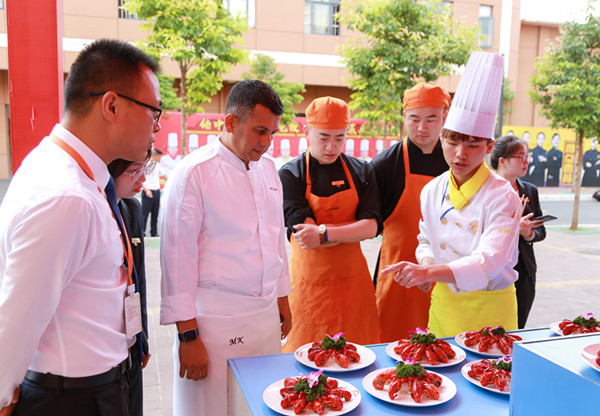 默罕默德行政总厨一行人先后参观了学校展厅、教学楼、西餐教学区、基本功实训区。