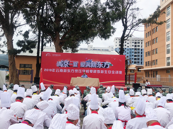 8月28日10:30,警钟长鸣,校园安全牢记于心。云南新东方烹饪学校为2019年夏秋季入学的新同学举行了安全知识讲座,此次讲座特邀到昆明市西山区车家壁派出所李副所长为同学们普及一场专业的法制安全知识。