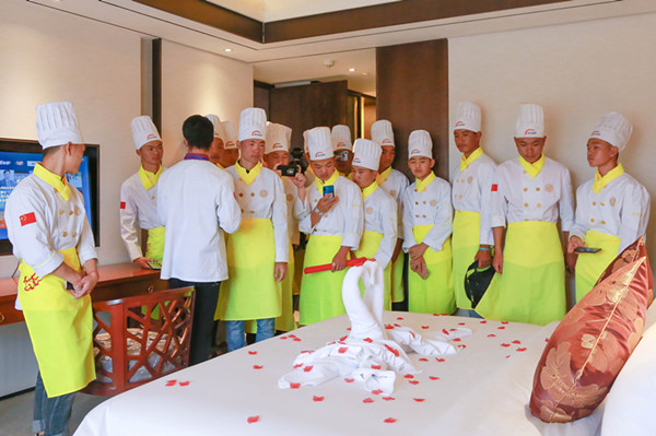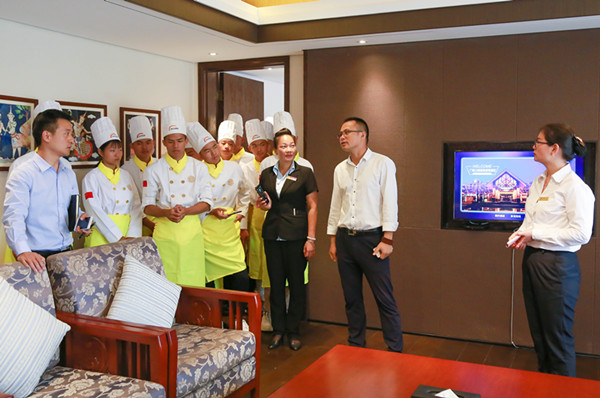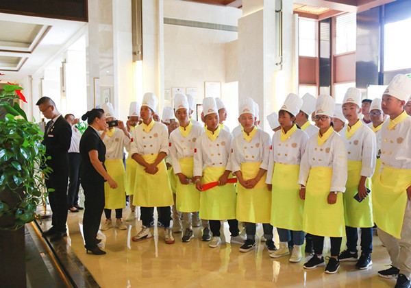 近日,云南新东方烹饪学校学生代表在学校创就业指导中心负责人张主任带领下来到广晟沁园温泉度假酒店参观学习。