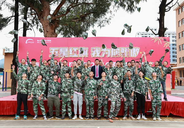 国旗飘飘,铸钢铁意志;军风巍巍,展学子英姿。