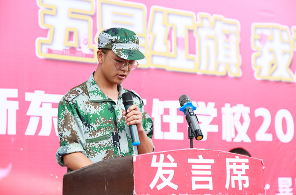 新生代表也代表全体新生表明了自己的态度:虽然我们即将告别“绿色军营”,但是我们会将这段日子深深铭记于心,在军训中我们学会了勇敢的去面对一切困难,学会了挑战自我,超越自我,我们会在今后的学习生活中不断发扬这种精神,朝着自己的目标坚定不移的迈进!
