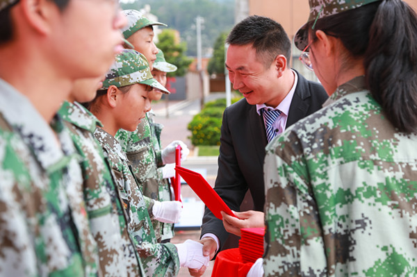 校区邓主任发表了讲话,军训虽然结束了,但是希望同学们能够把在军训中学到的军人精神运用到以后的学习生活中,认真学习,努力向上,学好属于自己的一技之长,无愧于自己,无愧于父母。