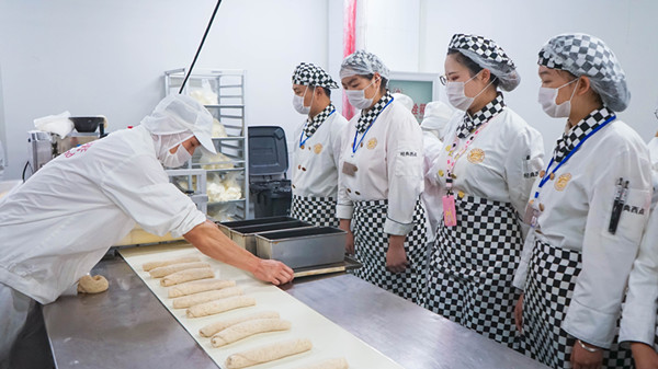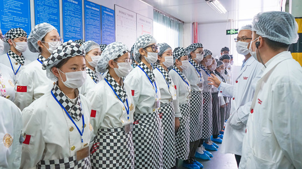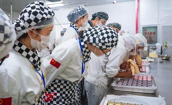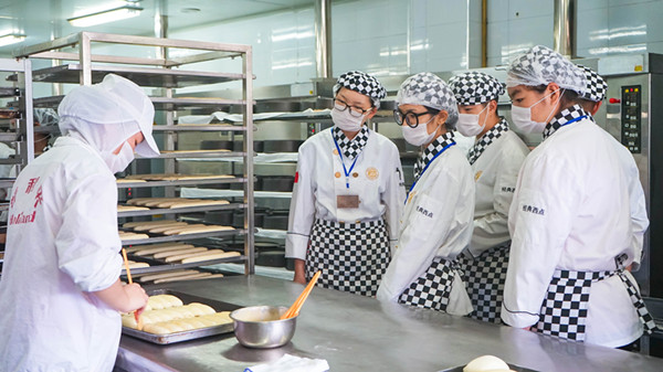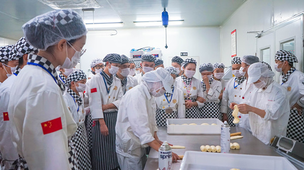 同学们刚进入到好利来就受到了好利来企业负责人热情接待。经过简单的交流之后,同学们来到好利来的工厂基地,不一会同学们就已经换上工作装备,进入到工厂基地学习参观。同学们说:“看着师傅们娴熟的手法,才发现自己回学校之后还需要勤加练习。技术是门手艺活,不练习始终达不到你想要的结果。”