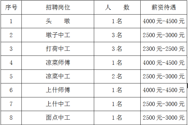 昆明伊兰堡小刀鸭餐饮有限责任公司是云南省具有代表性意义的餐饮企业。公司在25年的经营历程中得到了国家级、省级、市级、区级的多个奖项和殊荣,企业在服务大众、诚信经营理念的前提下,不断提升品牌质量和服务质量,得到了广大群众的认可与青睐。现因业务发展需要招聘以下人员: