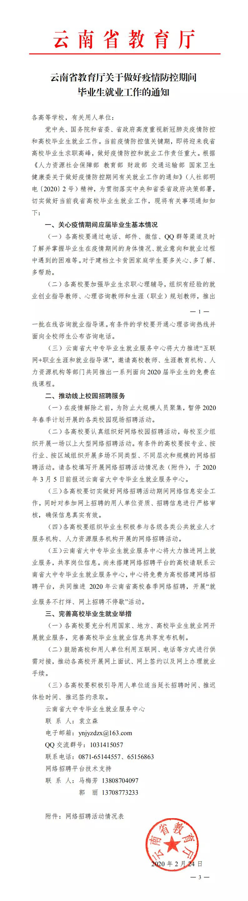 一、疫情期间暂缓举行一年一度的校企双选会活动。