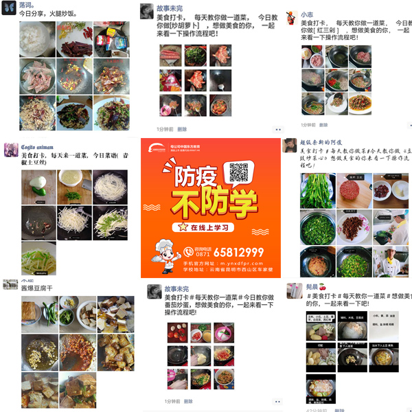 其实,云南新东方烹饪学校从2020年2月一直开展“停课不停学·美食跟着学”在线直播课堂,老师们途中还是遇到许多挫折,从线下课堂变换到线上课堂,大部分老师都是第一次接触,怎么直播怎么回复同学都是要他们去学习,当小编问道会不会很麻烦的时候,大多数老师的回答都是:“只要能够让同学们学到技术,再困难的问题我们都回去克服,尤其是每次看到同学们交上来的作业,这些困难早都抛之脑后,我们反而感到很欣慰。”