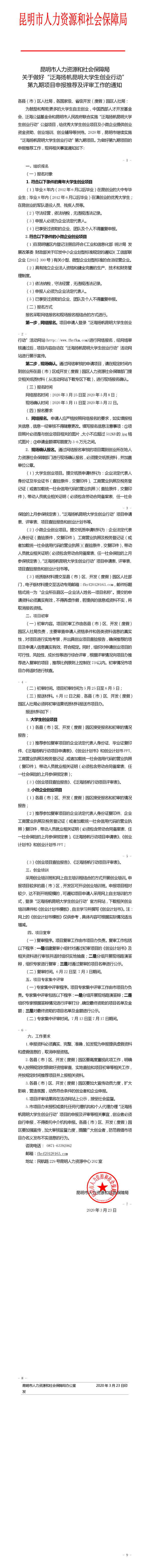 关于做好“泛海扬帆昆明大学生创业行动”第九期项目申报推荐及评