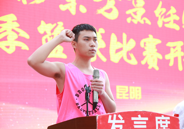比赛开始前,运动员学生代表白泽华发言说到:“发展体育运动,弘扬体育精神,对学校培养新世纪合格人才及对学校的发展建设有着重要的作用。他谨代表全体运动员向所有关心支持体育工作,并为学校体育工作做出辛勤奉献的领导,老师们表示衷心地感谢。”