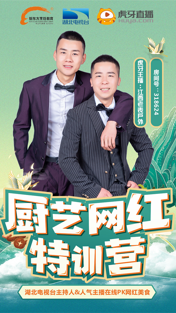 8月6号--8月7号,虎牙五大网红主播及湖北电视台三位人气主持人即将空降新东方烹饪学校。届时,湖北电视台、新东方烹饪学校、虎牙直播,三强联合打造的美食综艺《厨艺网红特训营》将为大家带来不一样的精彩呈现!
