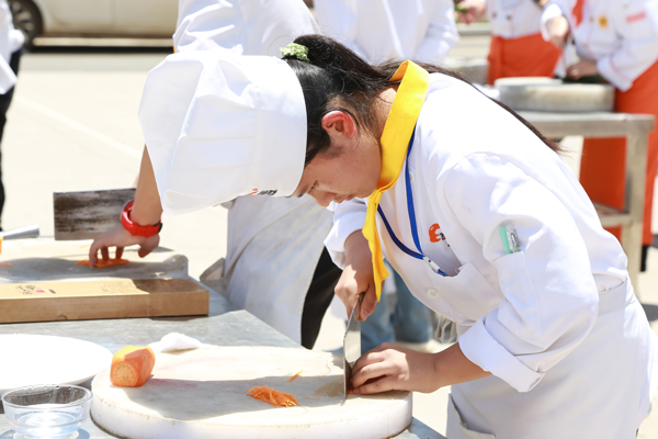 赛场上,参赛选手们个个胸有成竹。他们把自己的灵性和创造力赋予了手中的刀,人刀合一,游刃有余,做到人尽其才,物尽其用。百名参赛选手其高超的技艺让围观的同学们拍案叫绝。