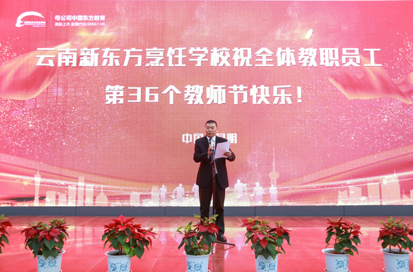 云南新东方烹饪学校吴校长代表集团公司向老师们宣读教师节慰问信。