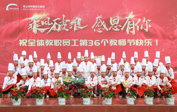 9月10日上午,教师节来临之际。云南新东方烹饪学校开展了“乘风破浪 感恩有你”教师节主题活动。全体师生齐聚一堂,共同庆祝这场属于教师们的节日盛会,伴随着嘹亮的国歌声响起,活动正式开始。