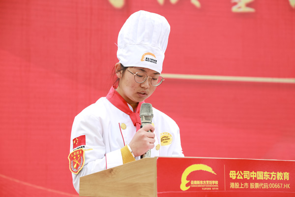 期间,云南新东方烹饪学校教务处刘主任也上台讲话,“刘主任的讲话让推行教学质量不再是空话,而是把工作落实到具体的人和事,也让我们的老师有了下一步的工作的方向。让同学们看到了光明的未来。”