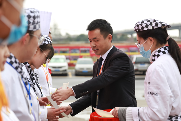 1月20日,云南新东方烹饪学校2020年度优秀班委、优秀学员表彰大会在校操场隆重举行,数百名学子齐聚操场,共同见证了这一盛况。云南新东方校区邓主任、教务处刘主任、教务处西点专业蔡主任、教务处短期专业郭主任、教务处杨主管、学籍处龙主管等领导出席了此次表彰大会。
