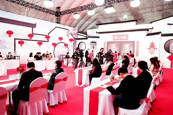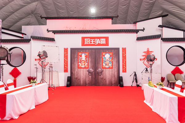 随后,我们来到了超级演播厅。在这里,我们可以看到精心规划的的环保气模馆,占地面积1600㎡,规模宏大、气势非凡。演播厅内部徽派风格,别有洞天,春联、灯笼、中国结等这些装饰,一派红红火火迎接着新年的气氛。