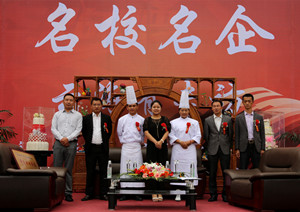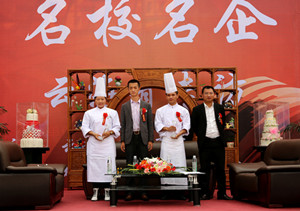 云南新东方校领导与云海肴人事经理以及两位“厨师长”合影
