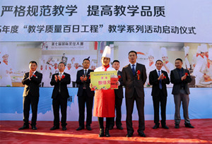 为进一步促进我校教学管理和师资队伍建设,进一步贯彻落实集团办学方针、强化师生“质量立校”意识,营造浓厚的教学氛围、学习氛围,调动教与学双方的积极性和创造性,创建优良的教风、学风和校风、全面提升教育教学质量。2015年10月26日下午,我校隆重举行了“严格规范教学 提升教学品质暨2015年度教学质量百日工程”系列活动启动仪式。