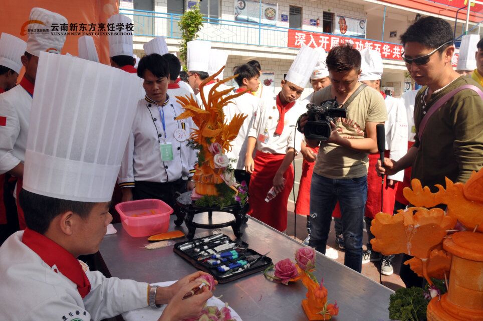 云南新东方烹饪学校将以此次活动为契机,全面提升职工职业技能,建设高素质职工队伍,培养适应新常态、新形式、新任务的技术技能型、复合技能型和知识技能型人才队伍,进一步提高教育教学质量。我校分别参与了中餐、面点、宴席展台等多个项目的角逐,展示了我校师生的职业素养和操作技能。精彩绝伦的技术演示,引人注目的作品展示,着实让参观者惊喜连连。