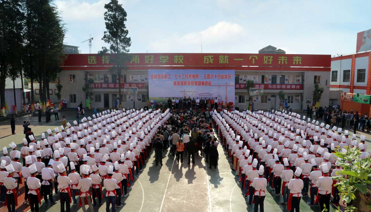 2018年昆明地区职工“72行大练兵•360行出状元”中式烹调(滇菜)技能大赛即将在云南新东方烹饪学校举行。 本次大赛共有15个工种35个竞赛项目,从启动到五月下旬结束,历时近两个月,活动采取“全员练兵、分级竞赛、层层选拨、集中展演”的方式在全区广泛开展,各级工会组织纷纷开展本单位、本系统各类技术培训和竞赛活动,并将优秀技术人才推荐到区总工会举办的各类比赛中来,全区上下再次掀起“学技术、练本领、强素质”职工技术练兵热潮,经过各基层工会预赛比武、层层选拔,全区各企业事业单位共推荐出12只代表队参加。 昆明地区职工“72行大练兵•360行出状元”中式烹调师(滇菜)技能大赛活动,旨在不断提升广大职工技能素质,培养适应新常态、新形势、新任务的技术技能型、复合技能型和知识技能型人才队伍,努力做到“共筑中国梦”。 本活动由昆明市总工会、昆明市人力资源和社会保障局指导,由昆明市职工技术协会办公室、昆明地区职工技能提升活动办公室、昆明市职业技能鉴定中心、昆明市职业培训指导中心、五华区总工会、五华区人力资源和社会保障局、昆明市餐饮美食协会等单位承办,云南新东方烹饪学校协办的大型餐饮服务比赛活动。