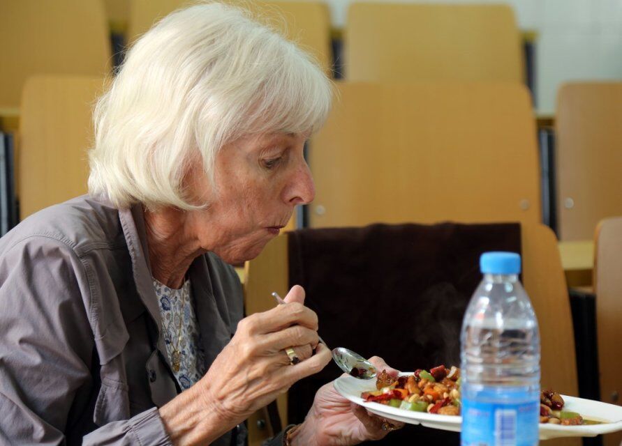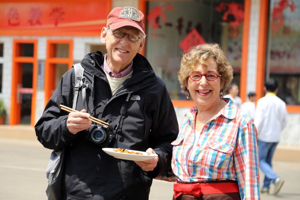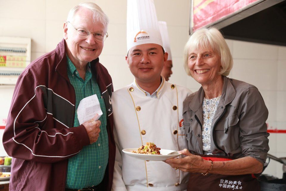 一对美国夫妇品尝自己制作的美味的宫爆鸡丁后展露笑容