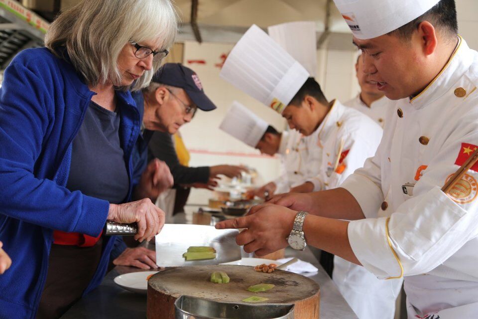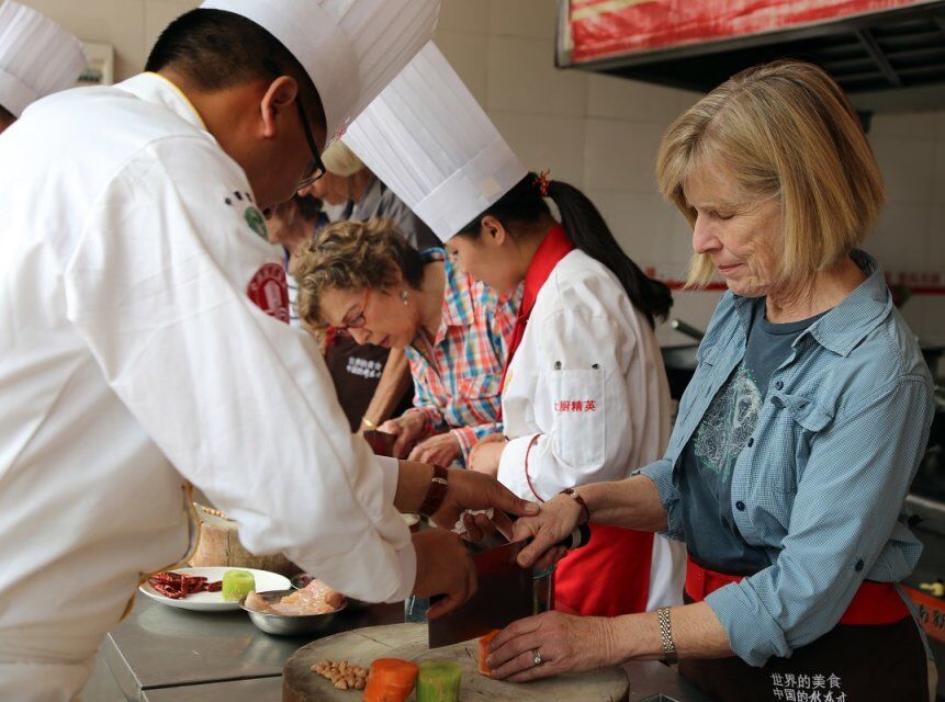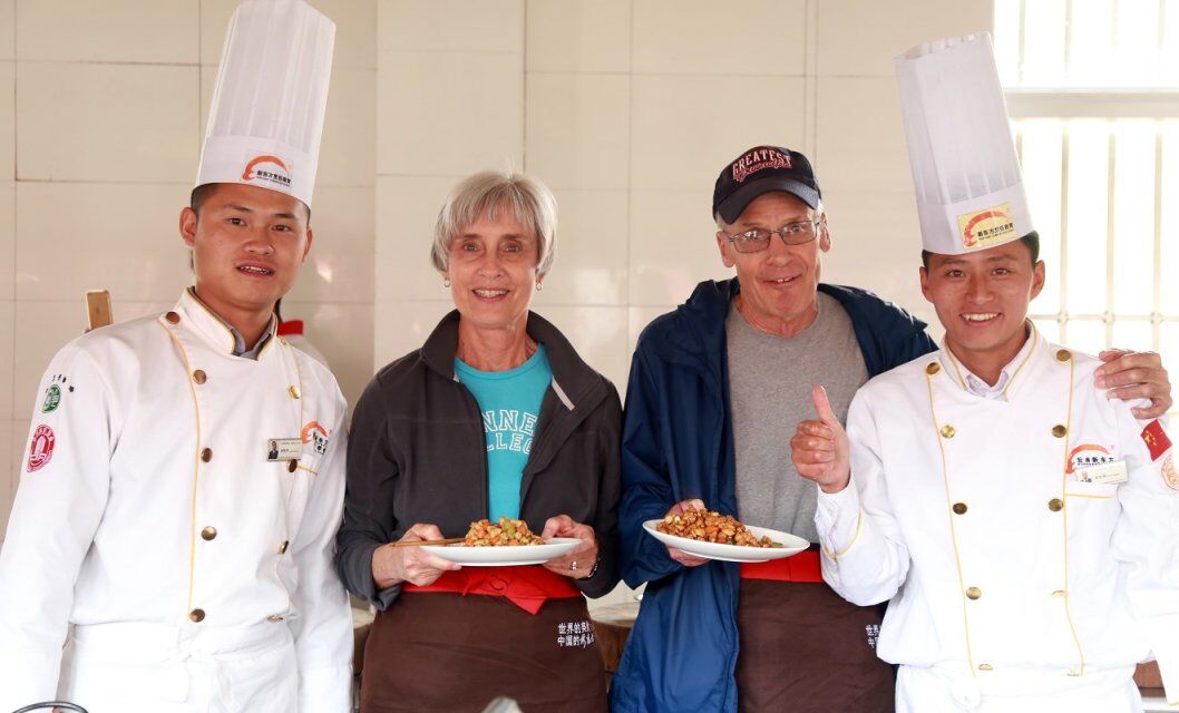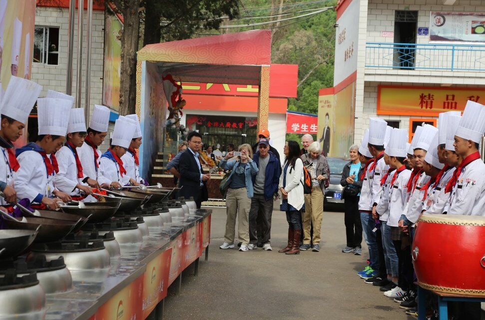 这十多位"歪果仁"是不远万里从美国来到云南旅行的, 尤其对餐饮文化教育特别感兴趣。这次跨国旅行特地选择来到云南新东方烹饪学校学习"spicy diced chicken with peanuts",即川菜经典——宫爆鸡丁,源于对中国饮食文化的浓厚兴趣,以及对云南新东方烹饪教育的肯定。我校也为此特意为美国友人们介绍了中华饮食文化的源远流长、博大精深,展现了云南新东方烹饪学校的发展历史和办学实力,给美国友人留下了深刻的映像,度过了美味而愉快的一天。