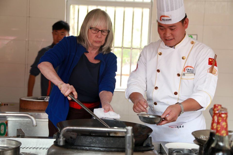 虽然语言的障碍使得在交流方面有点不便,但也抵挡不了东方美食对外国朋友的吸引。在参观了校园后,外国友人进教室学习操作,为了能让外国友人亲手烹制中国菜肴,云南新东方烹饪学校特别安排由老师先操作,一道道精美的菜肴在大师们手中不费吹灰之力就能烹制出来,获得了外国朋友们的声声赞叹,纷纷竖着拇指说“very good”。之后在老师的指导下让外国友人亲手体验。