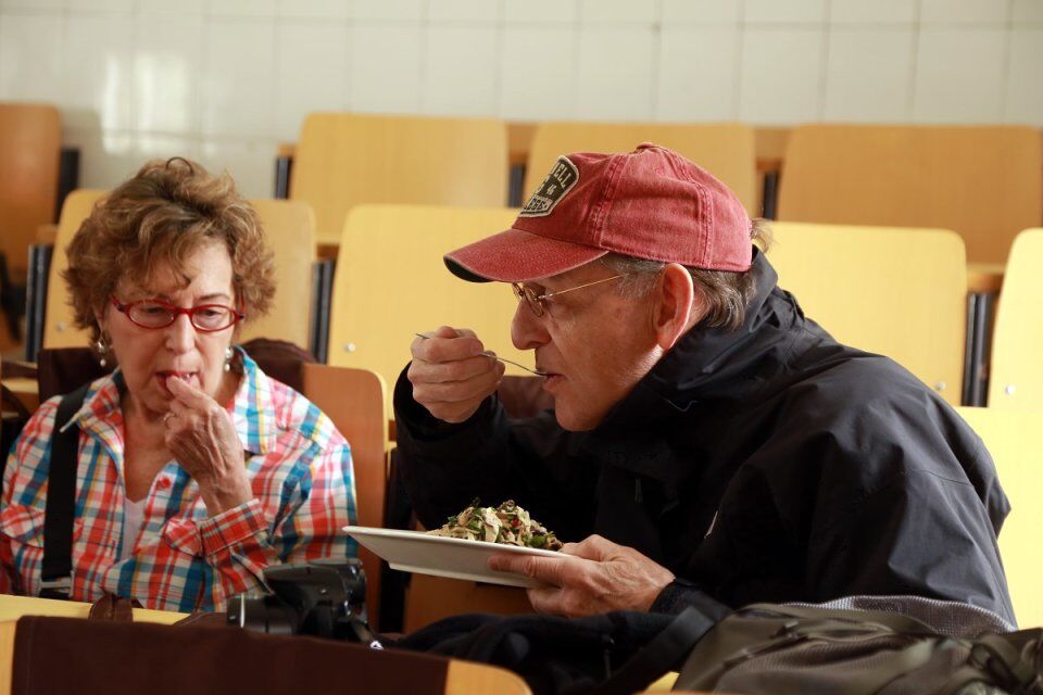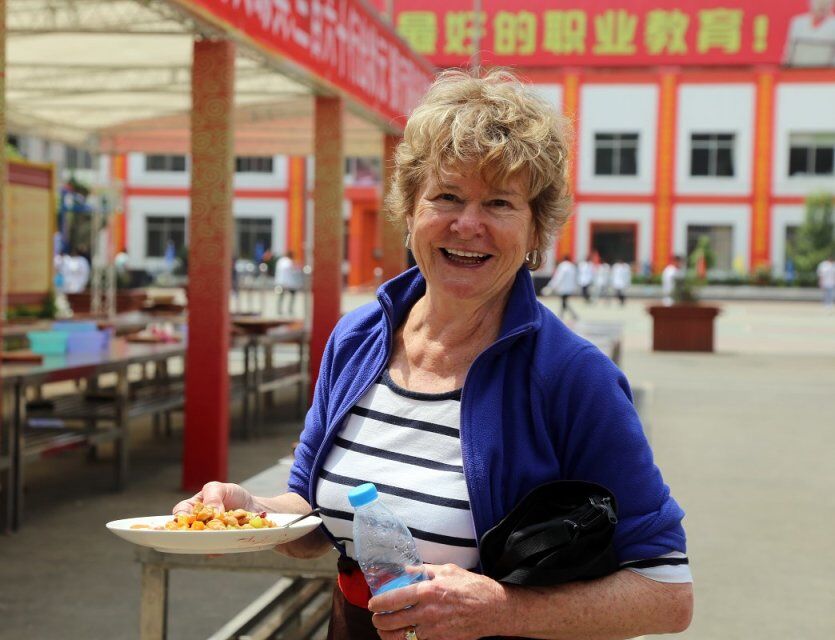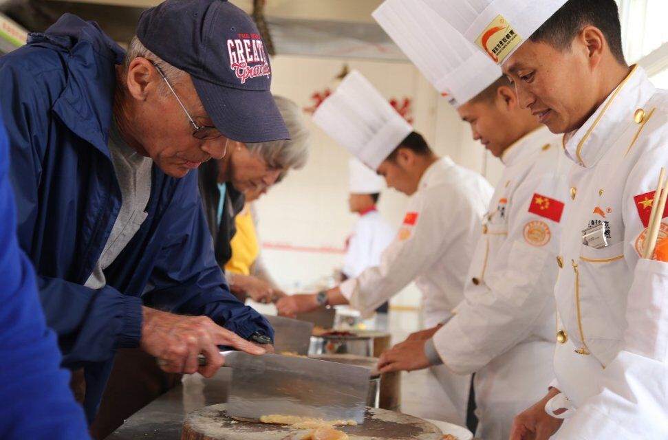 经过一早上的辛劳,美国友人们终于品尝到自己制作的美食,露出了欣喜的笑容。